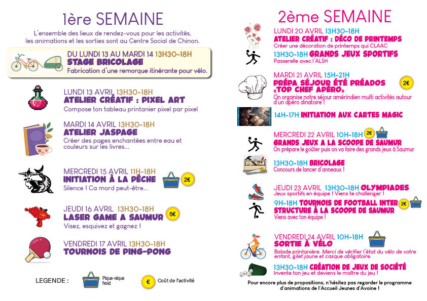 Programmes Jeunes des vacances d’Avril de Chinon